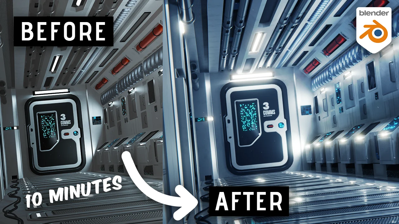 A complete Blender project file featuring a sci-fi corridor scene, specifically configured for the EEVEE render engine. The file includes all modeled parts, materials, and effects. It serves as the companion asset to the associated Kaizen Tutorials video, providing a practical example of setting up volumetrics, adjusting world properties, applying post-processing effects, and utilizing the compositor in Blender.