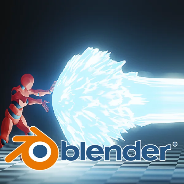 A Blender project file featuring an anime-style Kamehameha energy beam visual effect. The setup includes a charge-up particle system emitter designed to be attached to character rigs. It serves as a companion file to the creator's video tutorial and contains a sample scene configuration. Character models are not included.