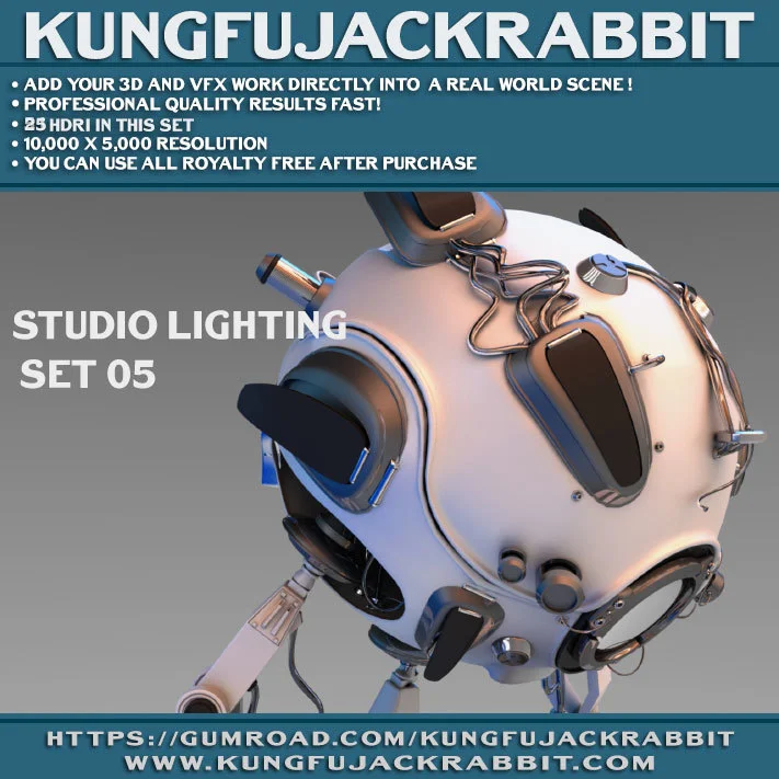 A collection of 25 high dynamic range imaging (HDRI) maps designed for setting up studio lighting architectures. The maps are provided in lat-lon format and cover a variety of studio setups, including three-point lighting, color lighting arrangements, and ring lighting. They are specifically crafted to illuminate interior product renders and close-up studio shots.