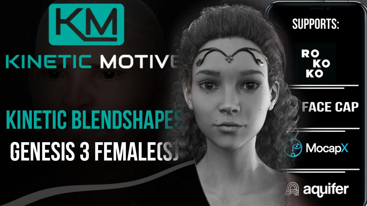Kinetic Blendshapes is a facial motion capture tool that integrates DAZ 3D characters with Blender. It allows users to apply motion capture data recorded with iPhone X (or newer) applications like FaceCap, Rokoko, Faceshift, or Aquifer directly to DAZ characters.