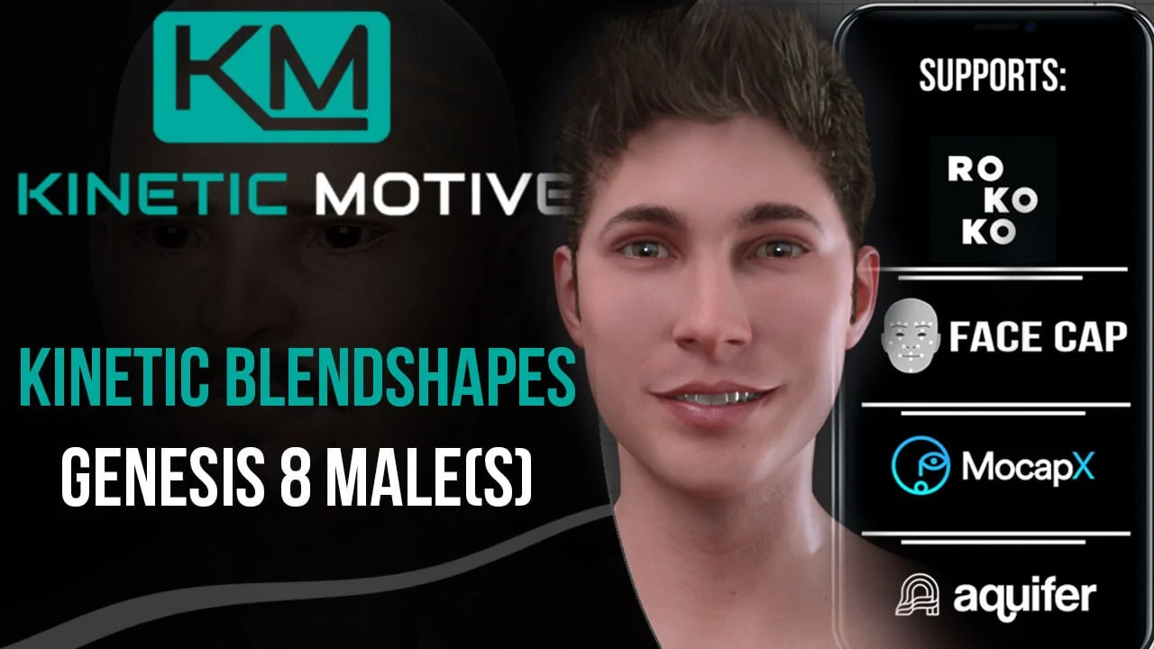 Kinetic Blendshapes is a facial motion capture plugin that bridges Daz Studio and Blender, specifically targeted at Genesis 8 Male characters. It automatically adds over 51 custom FACS blend shapes to imported DAZ 3D figures. This allows users to apply facial motion capture data directly to their characters. The tool is compatible with mocap data recorded using an iPhone X or newer through applications like FaceCap, Rokoko, Faceshift, and Aquifer.