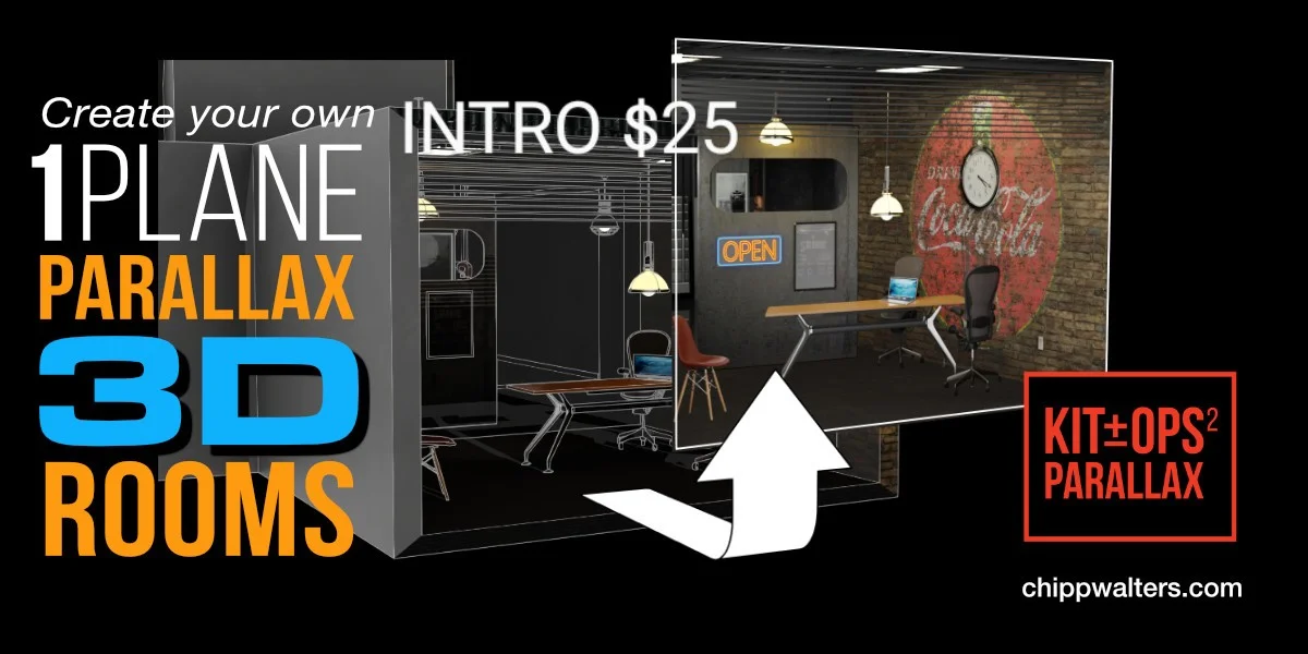 Kit Ops Parallax is an add-on that generates the illusion of 3D interior spaces on a single 2D plane. It allows you to build virtual rooms that can be viewed from different angles in real-time, simulating depth without the geometry overhead of a fully modeled interior. The tool includes a collection of over 60 loft-themed assets packaged as a KPACK to help you start building environments immediately. It is designed to integrate with the Kit Ops asset management system, enabling you to save and deploy the generated parallax materials onto objects across your scenes.