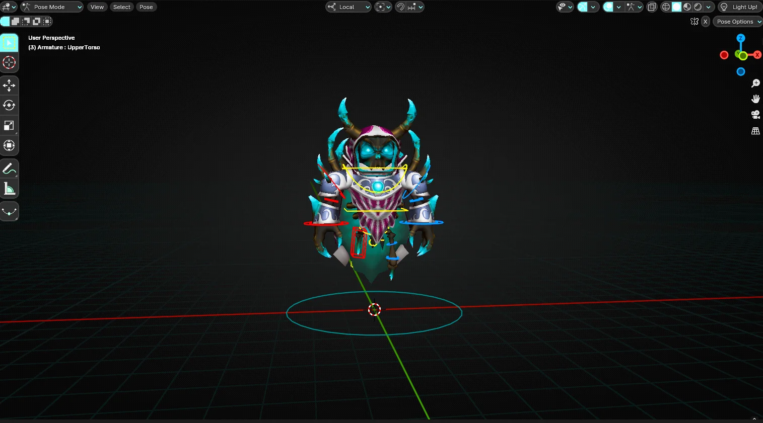 A rigged 3D model of the Korblox Deathspeaker character configured for animation in Blender. The rig includes the necessary armature to articulate and pose the character within 3D scenes.