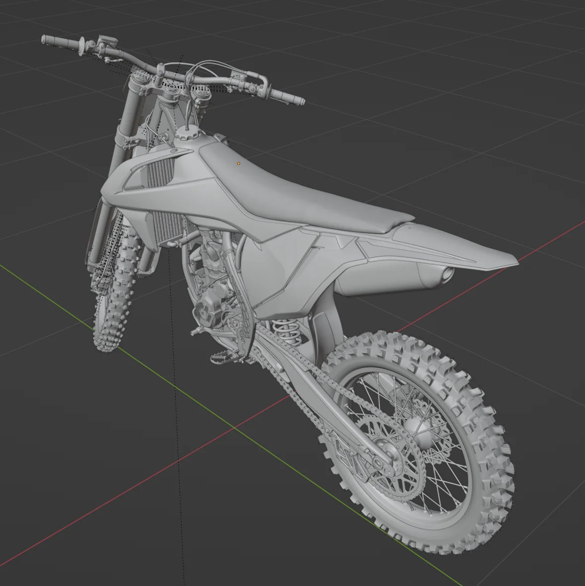This is a detailed 3D model of the KTM SXF250 dirtbike, representing the 2016, 2017, and 2018 model years. The geometry is largely based on real-world 3D scans to ensure accurate proportions and structural details. While mostly built natively, certain components were created in Fusion 360 and feature triangulated meshes.