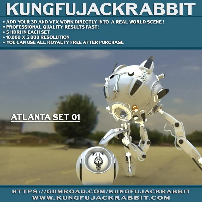 This collection includes five high-resolution HDRI maps captured at various locations in Atlanta. Four of the environments are created using a fisheye lens, offering resolutions over 7500 by 3500 pixels. The fifth map, a parking lot environment captured via a light probe, is provided at 2048 by 1024 pixels. These latitude-longitude format images are designed for environmental lighting and generating reflections in 3D scenes.