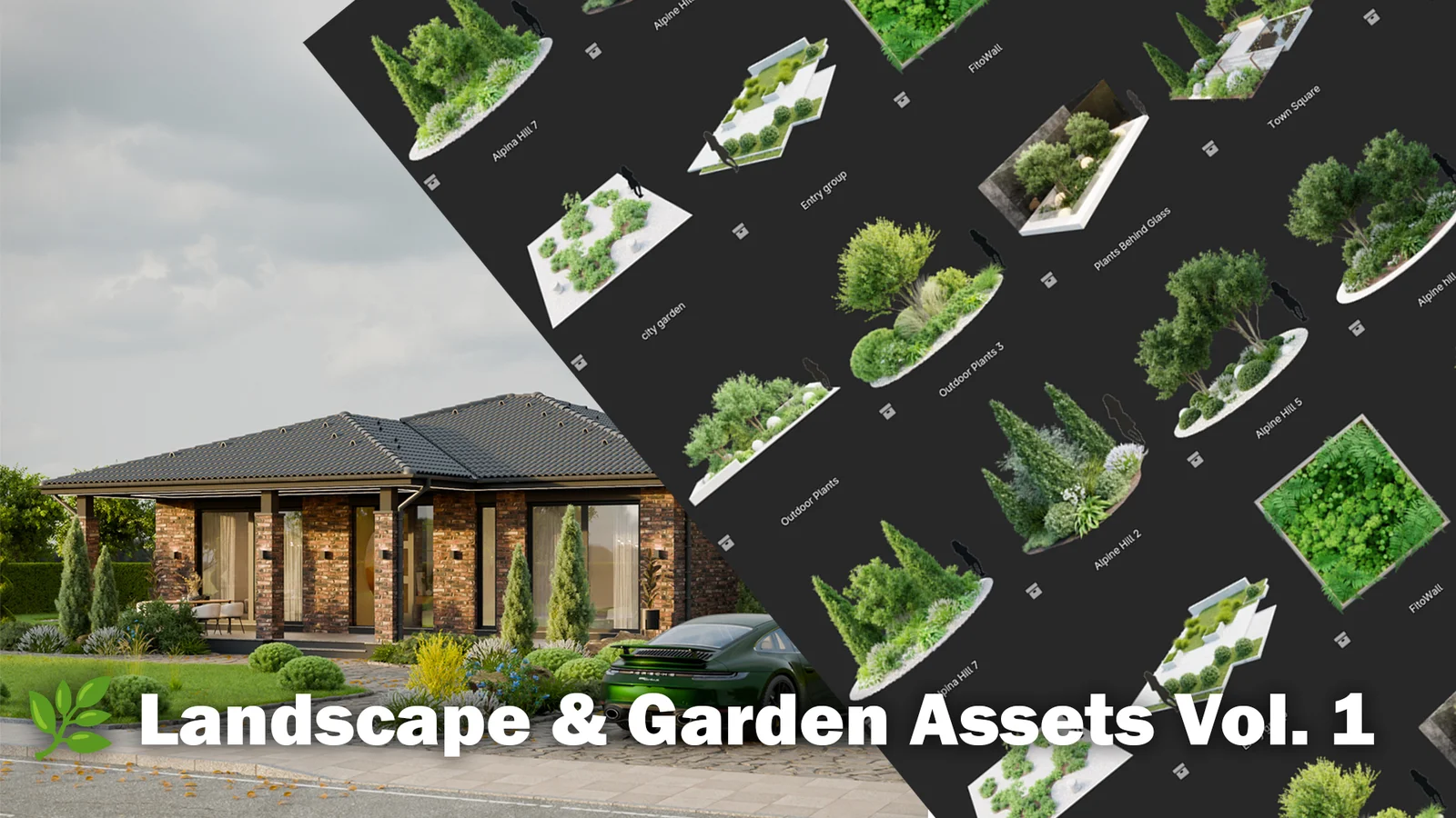 This collection provides 15 ready-to-use outdoor environments designed for exterior architectural visualization. The pack includes a variety of setups ranging from natural landscape compositions and residential gardens to urban public squares and city parks.
