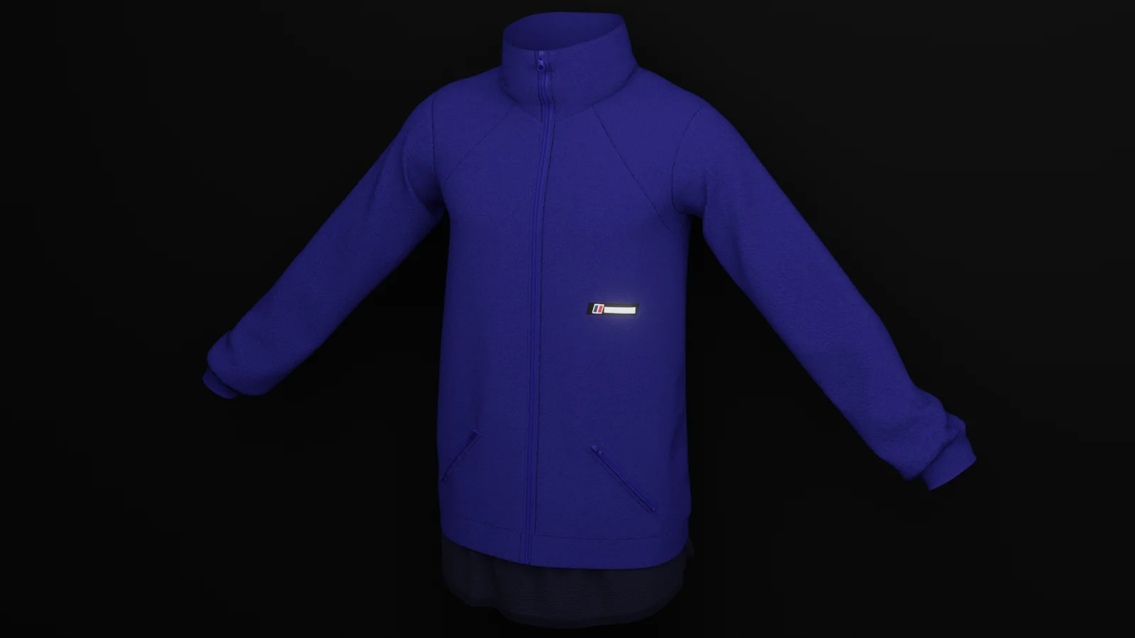 A detailed 3D model of a jacket designed for character avatars. The asset consists of 64,541 polygons and utilizes a single material setup equipped with 4K resolution textures. It was originally created using a workflow that combines Marvelous Designer, Blender, and Substance Painter.