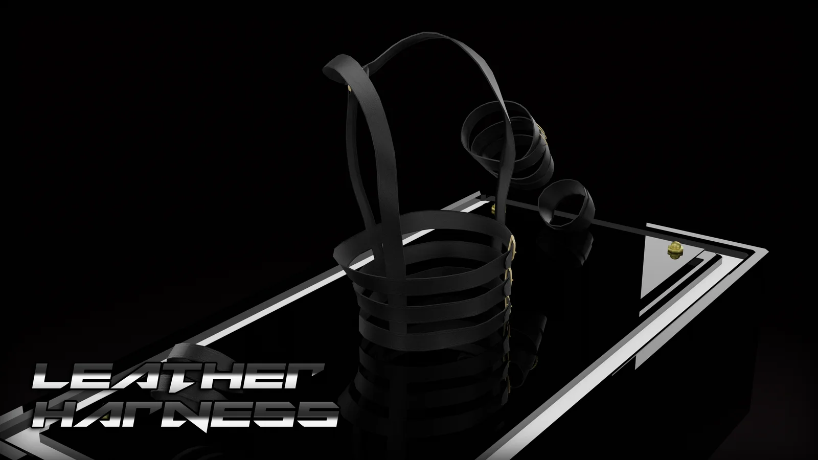 A 3D model of a leather harness originally created in Blender. The asset includes standard PBR texture maps generated in Substance Painter, alongside specific texture configurations designed for use with the Poiyomi shader.