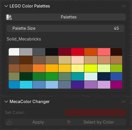 This tool provides a custom color palette and changing utility designed specifically for Mecabricks materials in Blender. It allows users to efficiently modify the colors of imported Mecabricks models and is fully compatible with the MecaMatUpgrader Advanced tool.