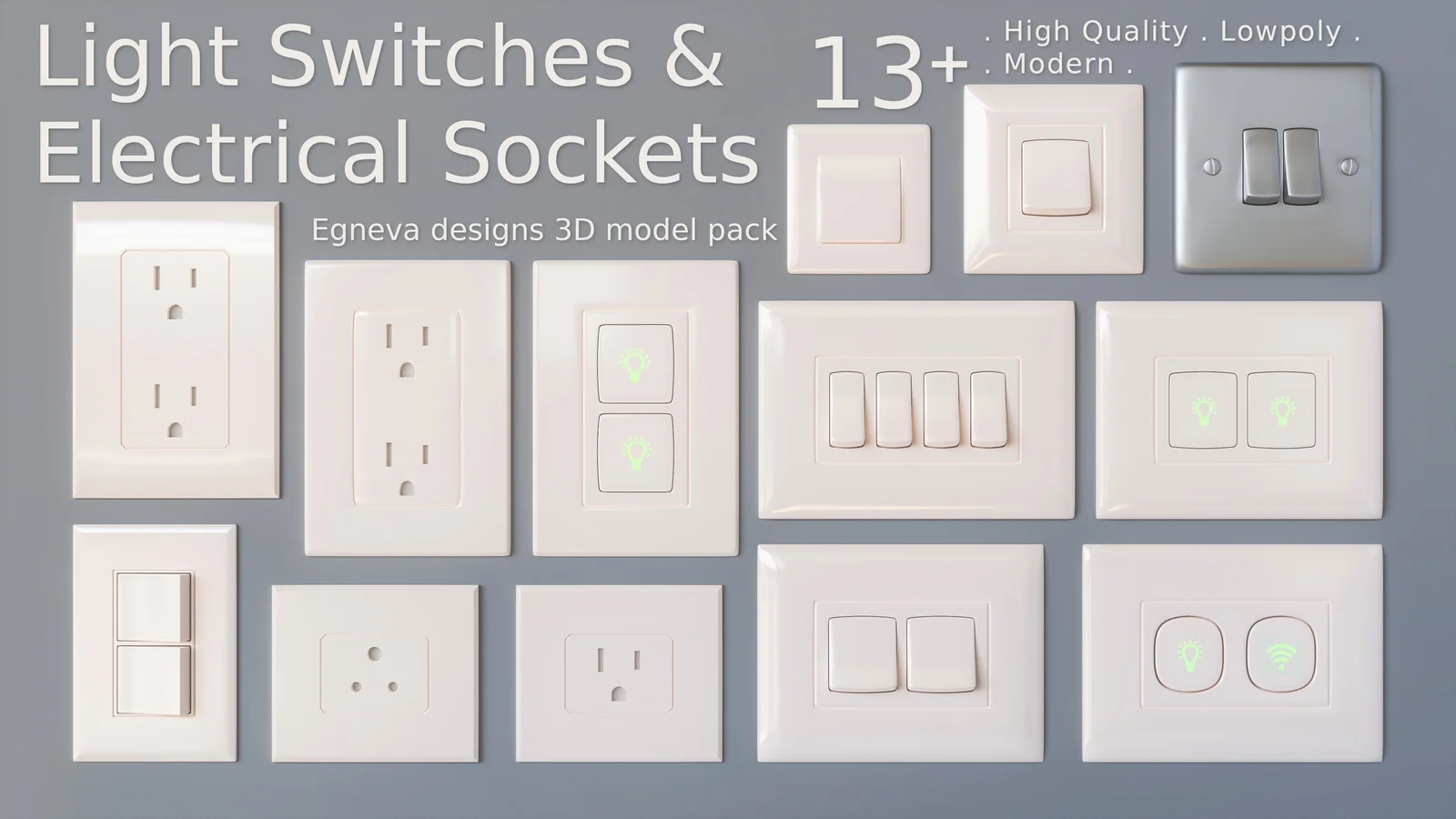 A collection of low-poly light switch and electrical socket models prepared for architectural visualization and interior scenes. The assets are provided as native Blender files and FBX exports, complete with packed textures. The base meshes are designed to be lightweight, allowing users to apply subdivision surface modifiers for close-up shots requiring higher exterior fidelity.