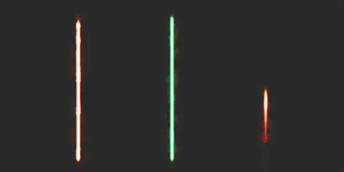 This shader provides a node setup for generating lightsaber blades and blaster bolts within the Cycles render engine. The included files allow users to create a standard continuous blade or an unstable variant similar to Kylo Ren's weapon, alongside standard blaster bolts. The node structure is organized to allow for manual adjustments to match specific scene lighting and scale.