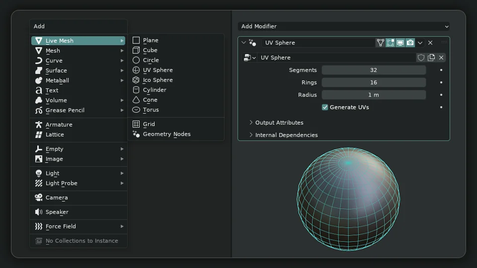 Live Meshes is an add-on that enables the modification of mesh primitive parameters after their initial creation in Blender. It replicates the behavior of native Blender mesh primitives, allowing for adjustments such as changing the number of sides on a cylinder at any point in the workflow. The tool supports procedural modeling approaches by removing the need to finalize primitive settings immediately upon adding them to a scene.