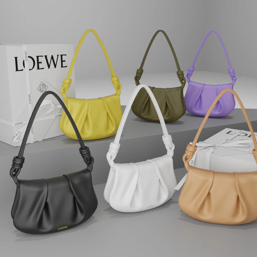 A 3D model of the Loewe Paseo bag. The asset includes six different color variations and is set up for use with both EEVEE and Cycles rendering engines.