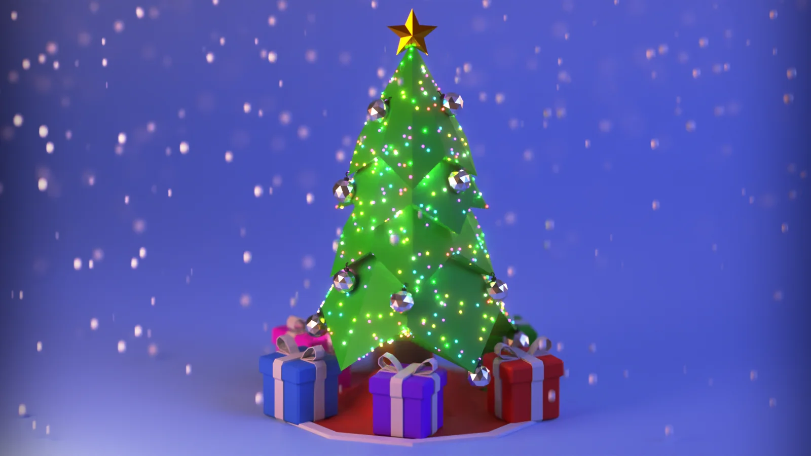 A low-polygon 3D model of a Christmas tree created in Blender. This package provides the project files from the creator's video tutorial. The download includes the original Blender file, an HDRI lighting setup, and final rendered images.