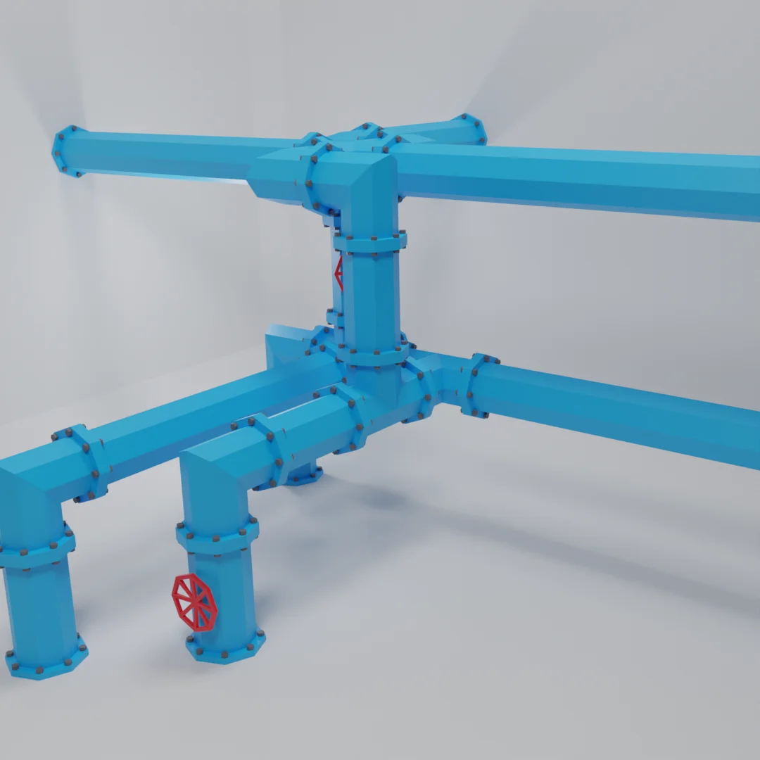 This asset pack contains a collection of low poly pipe models designed for modular environments. The components are built to snap together, facilitating rapid world-building and level design workflows.