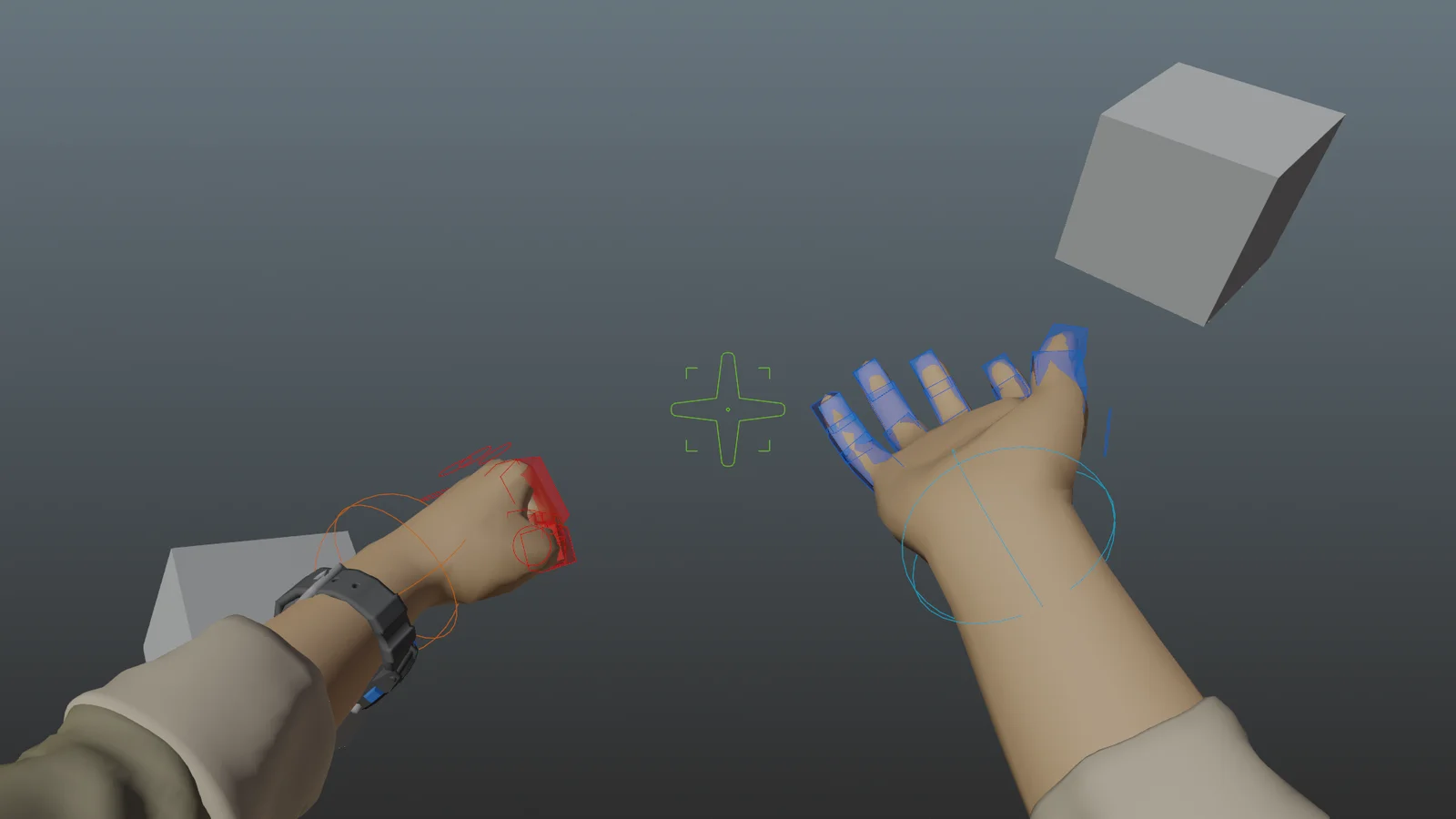 This asset provides a first-person viewmodel arm rig designed for animation and rendering within Blender. It features realistic proportions paired with a stylistic approach, including a mix of simulated and hand-sculpted clothing options. The rig comes equipped with specialized shader setups for elements like mesh gloves, adjustable nail lengths, an undershirt, and various jewelry pieces. Additionally, it includes a digital watch with a customizable face, controlled via custom properties on a dedicated settings bone.
