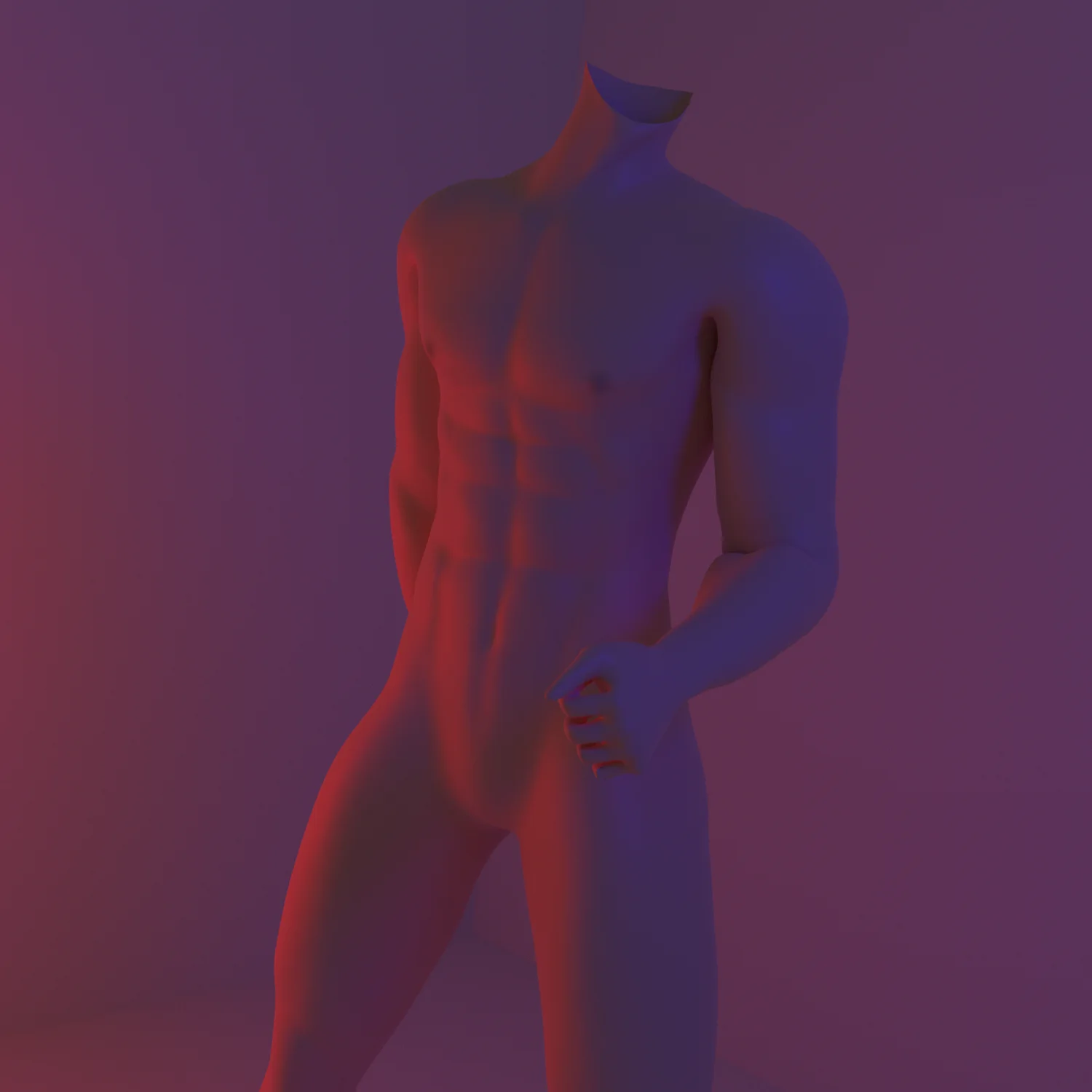 A fully rigged and weighted male base mesh designed for character creation and avatar development. The quad-based model consists of 49,000 faces with clean topology and unwrapped UVs for texture customization. Two structural variations are included, featuring both broad and lowered shoulder designs in an A-pose configuration.