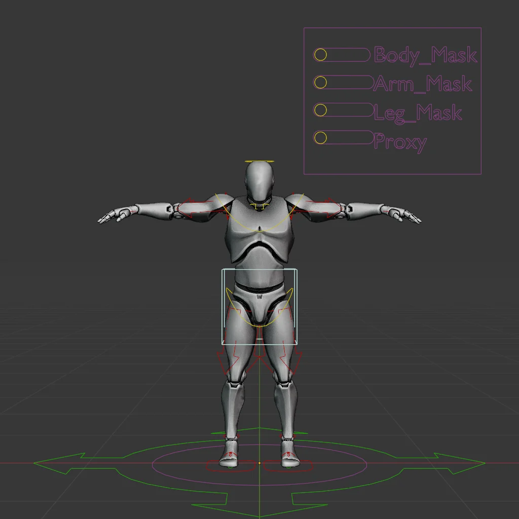This is a rigged mannequin model designed for animating body mechanics in Blender. The character rig is built using Blender's included Rigify addon, providing a standard control scheme for posing and animation workflows.