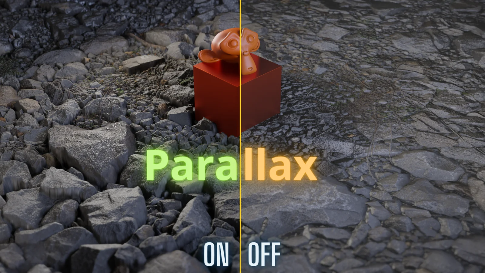 This shader node provides a parallax mapping solution for flat planes, allowing users to fake complex geometric depth without high polygon counts. It serves as a performance-friendly alternative to traditional displacement, reducing scene geometry from millions of polygons down to a few hundred. The setup helps keep render times low, particularly in scenes requiring multiple duplicated surfaces. An instructional video is included to guide the activation process.