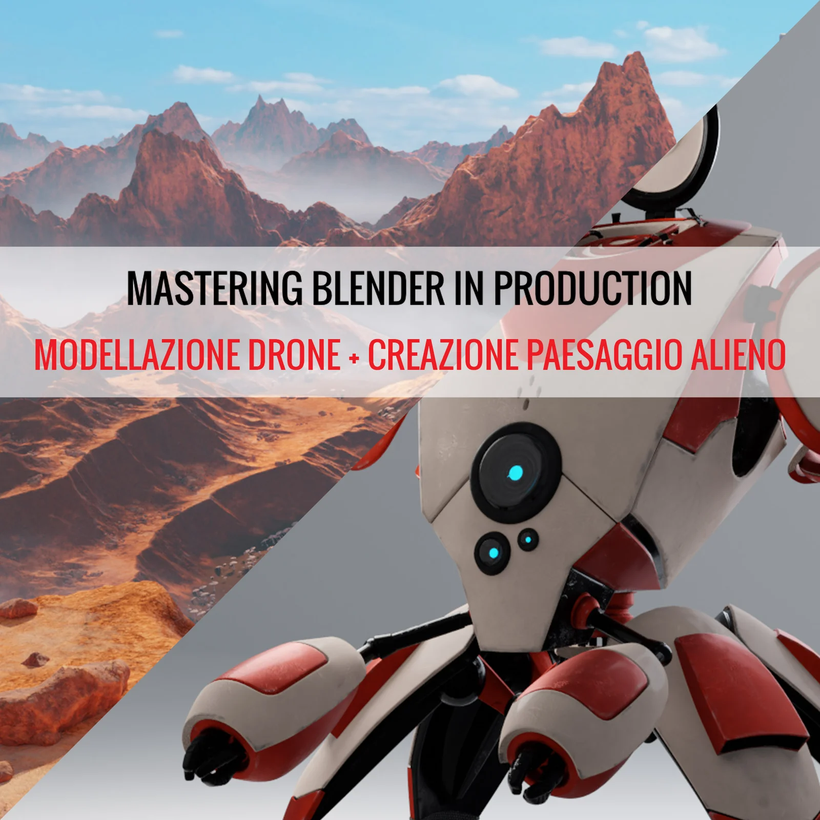 This training course teaches VFX production workflows in Blender through two distinct modules. The first module covers hard surface creation by modeling a drone, including UV mapping, shading, texture painting, baking, and exporting the final mesh. The second module focuses on environment creation, walking through the process of building an alien landscape using procedural modeling techniques, sculpting, scattering, volumetrics, and look development.