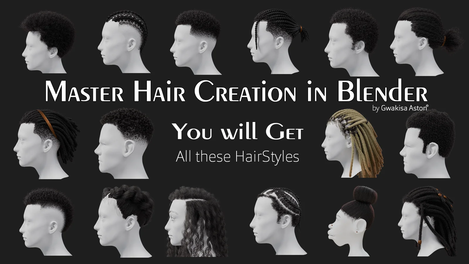 This educational resource focuses on the process of creating and styling hair within Blender. The guide covers the necessary settings required for rendering realistic hair and provides breakdowns of various hairstyles. Included topics range from classic cuts to more intricate celebrity hairstyles, exploring the technical workflows for character grooming.
