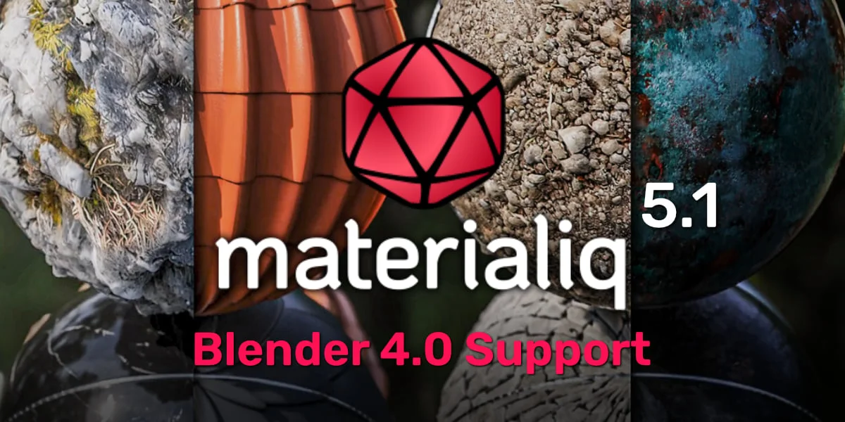 Materialiq is a material library containing over 330 pre-configured shaders across 12 categories, designed for use in Cycles and EEVEE. It provides a structured collection of surfaces that can be applied to geometry via the Blender Asset Browser or the developer's Engon browser.