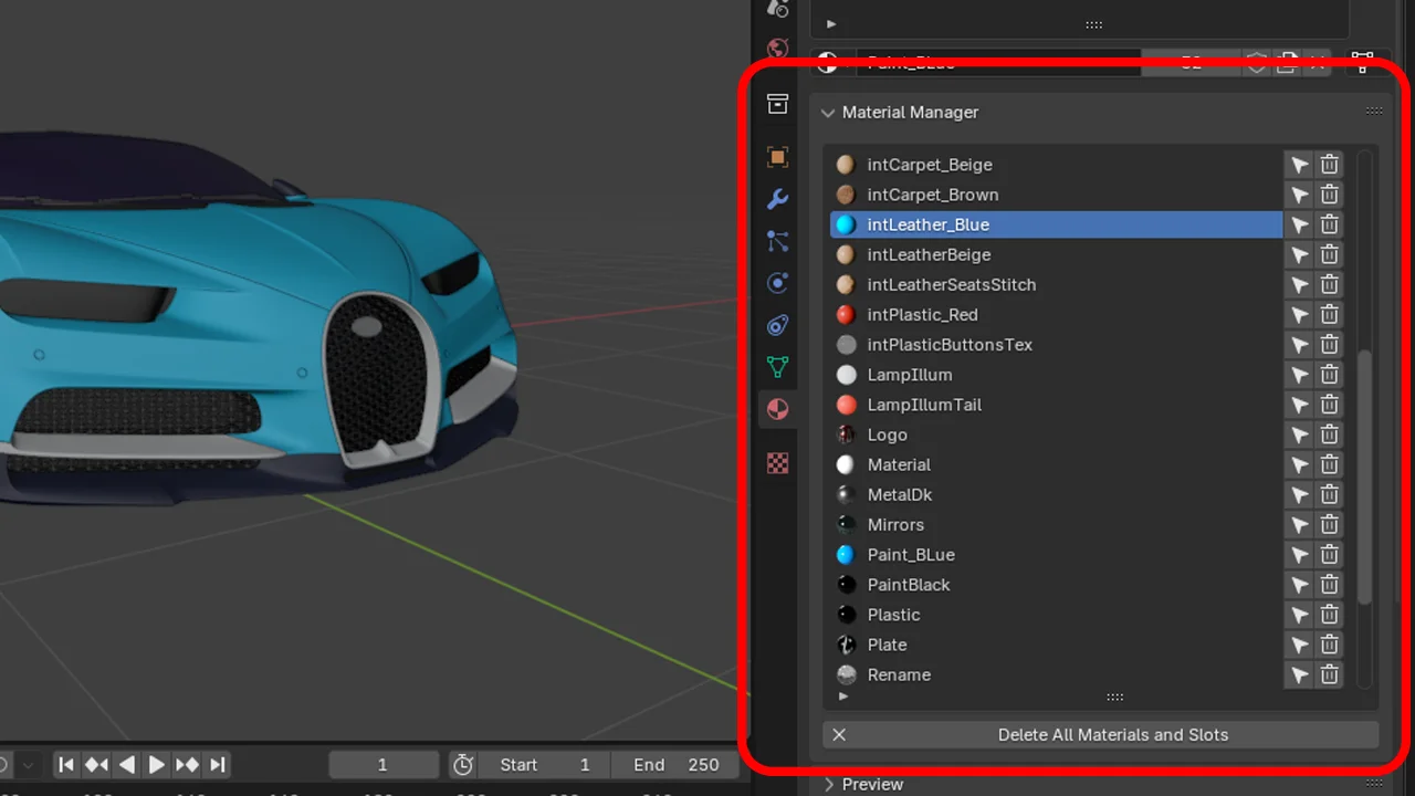 This add-on provides tools for organizing and managing materials within a Blender project. It includes features to preview and rename all materials from a single interface. Users can select all objects sharing a specific material with a single click, identify hidden objects that have a material applied, and easily delete or clean up unused materials from the scene.