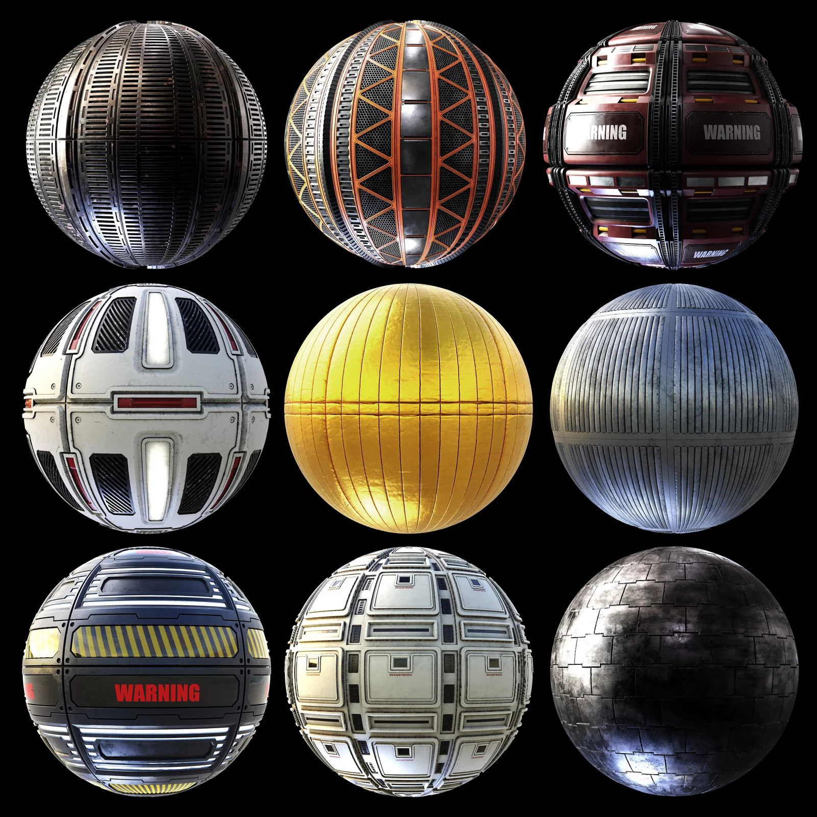 This package provides a collection of nine 4K PBR texture sets focused on sci-fi panel designs. Created using Substance Designer, these materials are built for hard-surface and futuristic environment detailing.