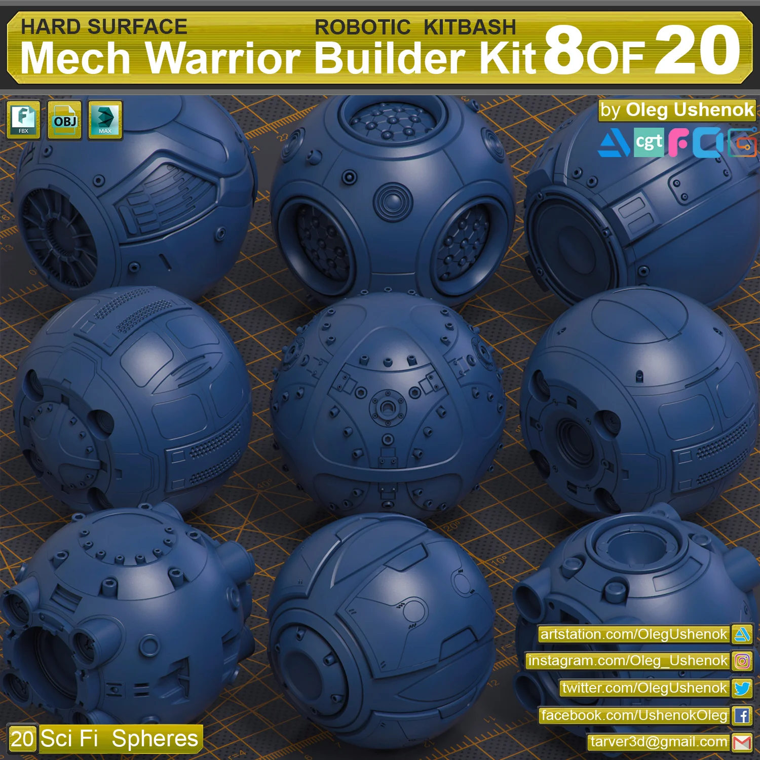 This kitbash set includes 20 hard-surface sci-fi sphere models designed for detailing mechs and robotic subjects. The components are suitable for integration into both private and commercial 3D projects.