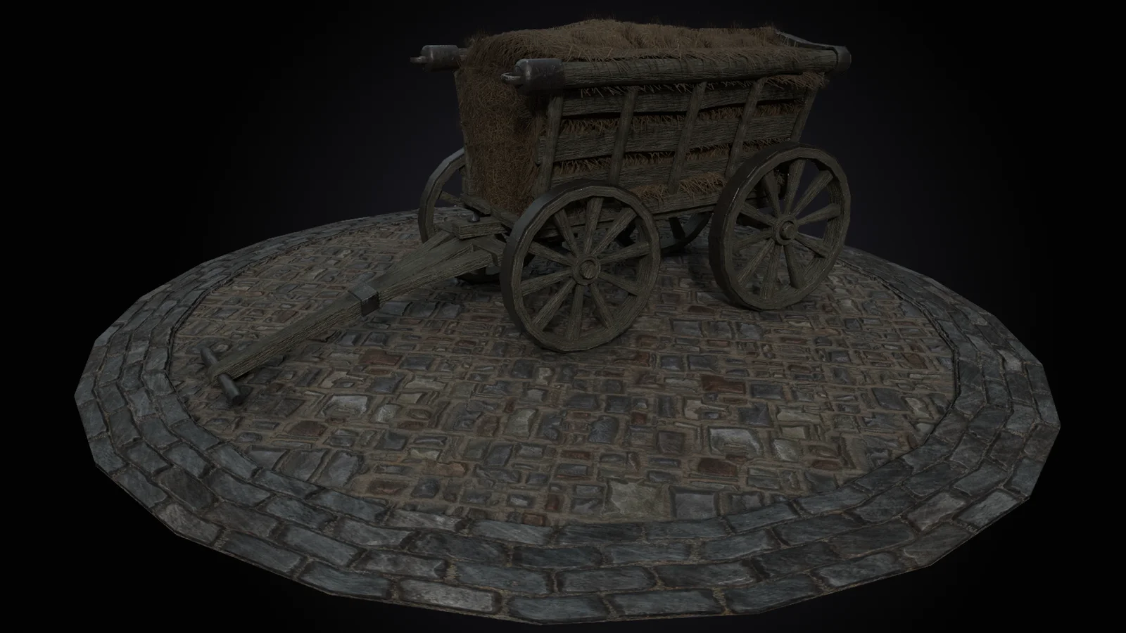 A game-ready, medieval-themed hay cart 3D model built to real-world scale. The asset includes a fully packed Blender file with materials pre-configured for alpha transparency, along with combined color and ambient occlusion maps. It also provides an FBX file and dedicated texture sets optimized for Unreal Engine 4 and 5. The unrigged model consists of 18,000 polygons and 10,000 vertices.