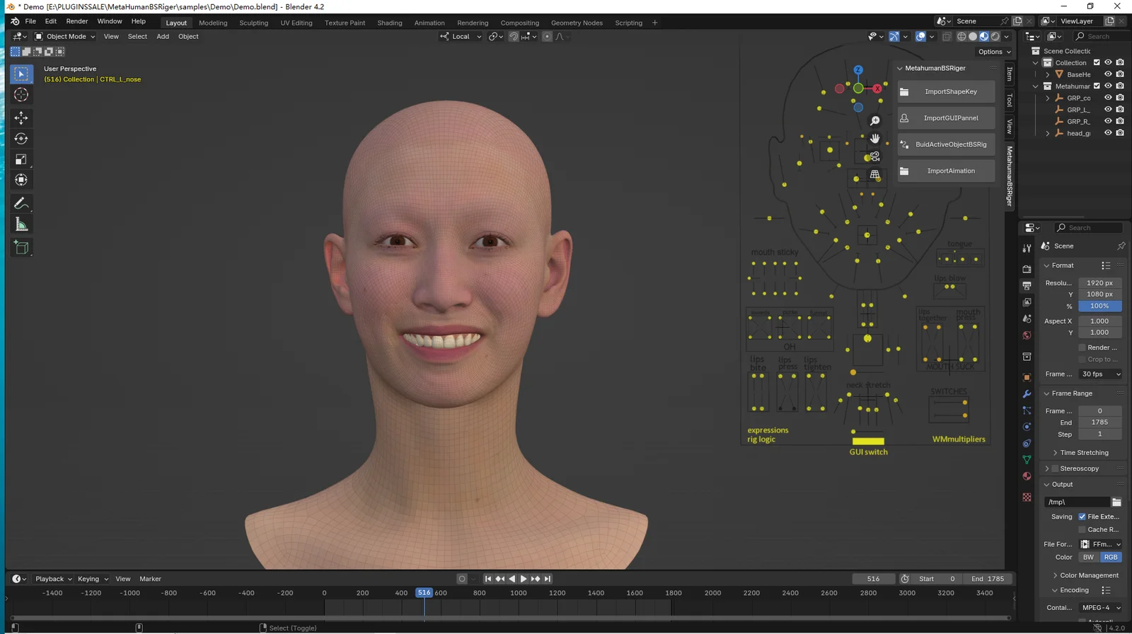 This toolset generates automatic blendshape rigs in Blender from Unreal Engine MetaHuman DNA files. It includes a Windows command-line tool provided as a Visual Studio 2022 project, alongside a native Python addon for Blender. The addon imports all 258 facial blendshapes and automatically constructs the character rig for animation. The included command-line utility supports DNA files generated from Unreal Engine 5.5 or earlier.
