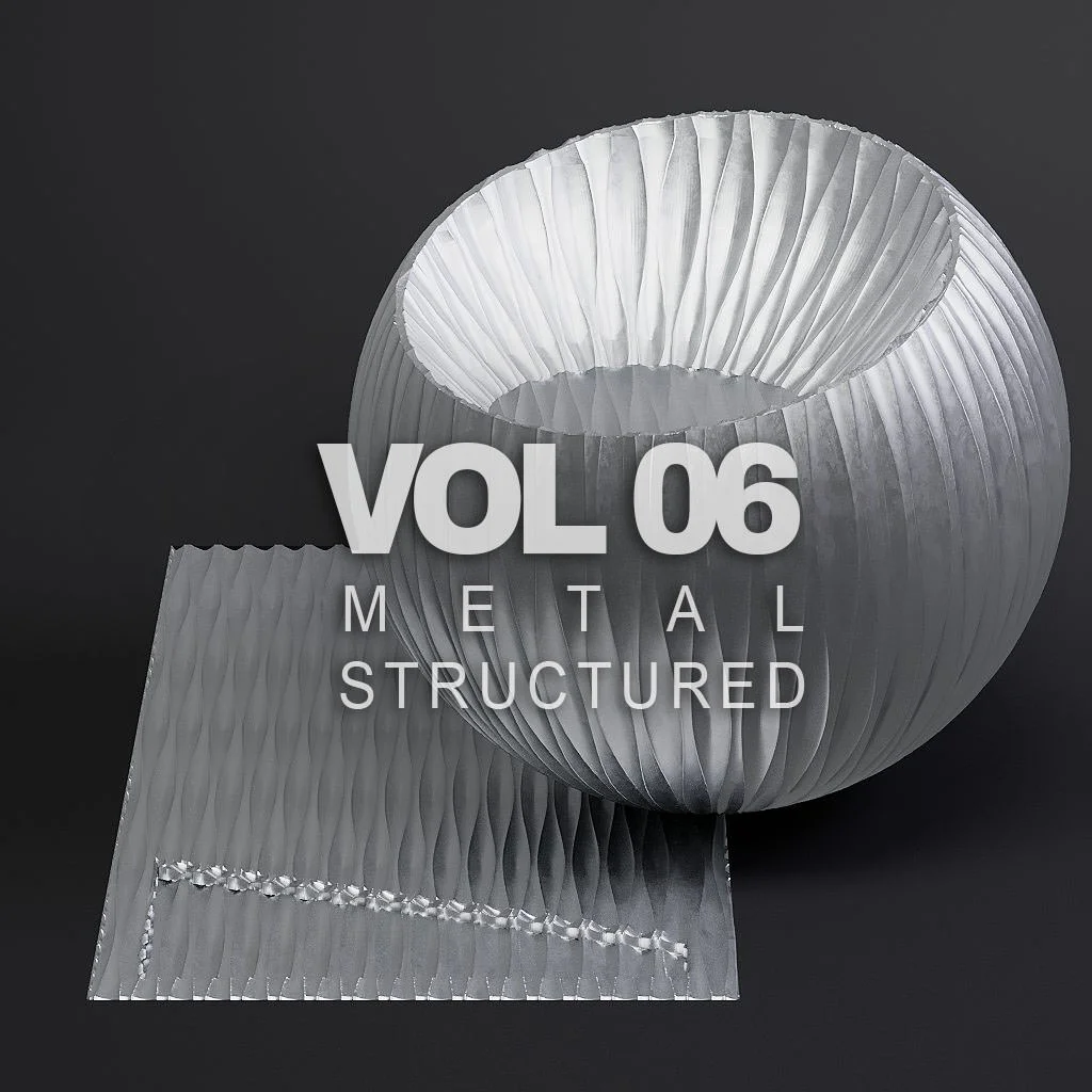 This collection provides 26 structured metal PBR material sets suitable for 3D rendering environments. Each material includes a basic structure texture along with corresponding glossy, bump, and displacement maps. The entire pack contains approximately 115 individual texture files that are compatible with any 3D software and common rendering engines.