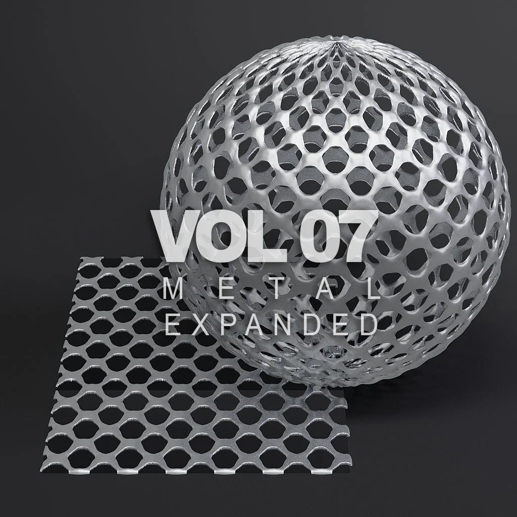 This texture pack contains 36 variations of expanded metal materials. The collection includes a total of 217 texture maps, providing glossy, bump, and displacement channels alongside the base structures for each metal. These format-agnostic PBR textures are compatible with any standard physical rendering engine.