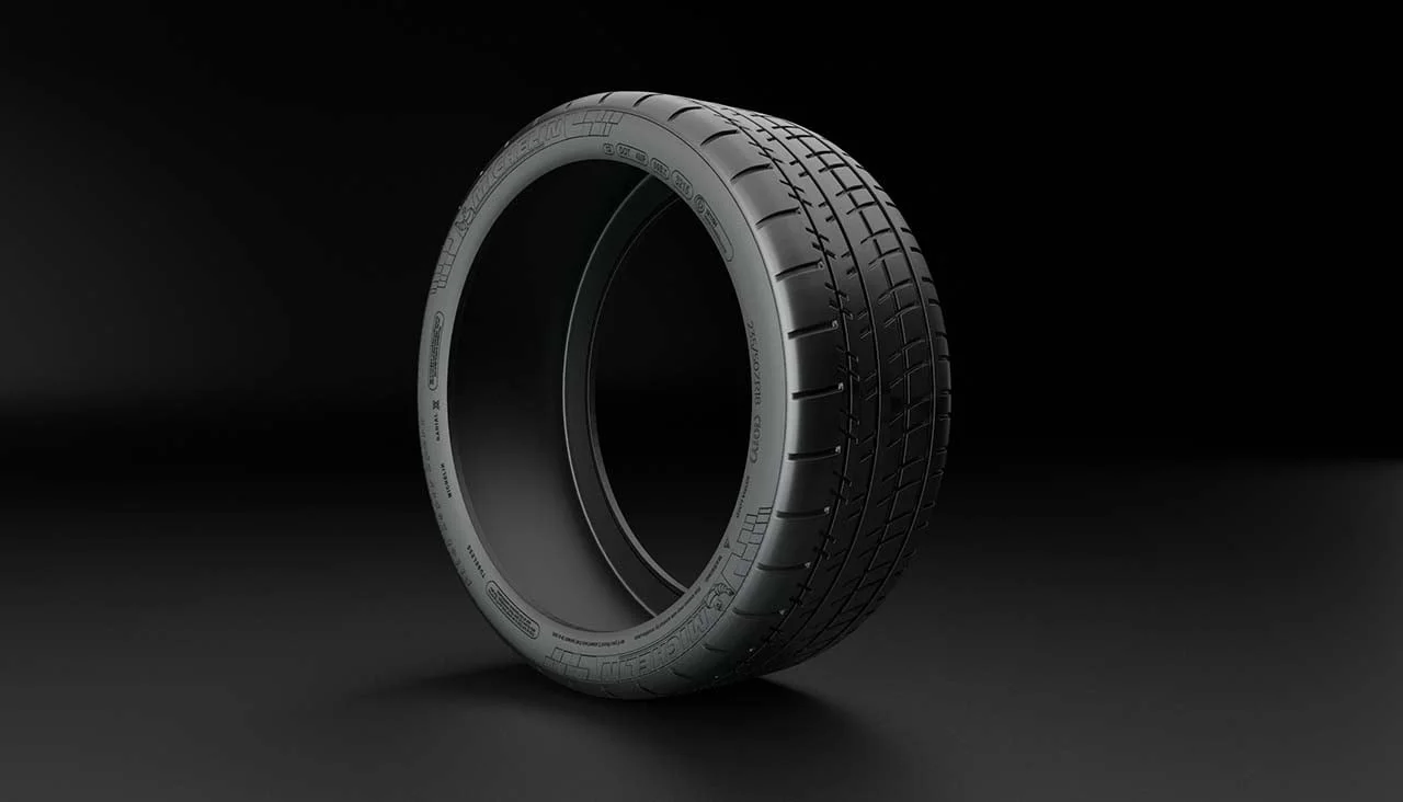 A high-resolution 3D model of a Michelin Pilot Super Sport tire. The geometry is high-poly, constructed for photorealistic rendering and automotive visualization. The asset includes 3000 by 3000 pixel texture maps specifically detailing the tire sidewall.