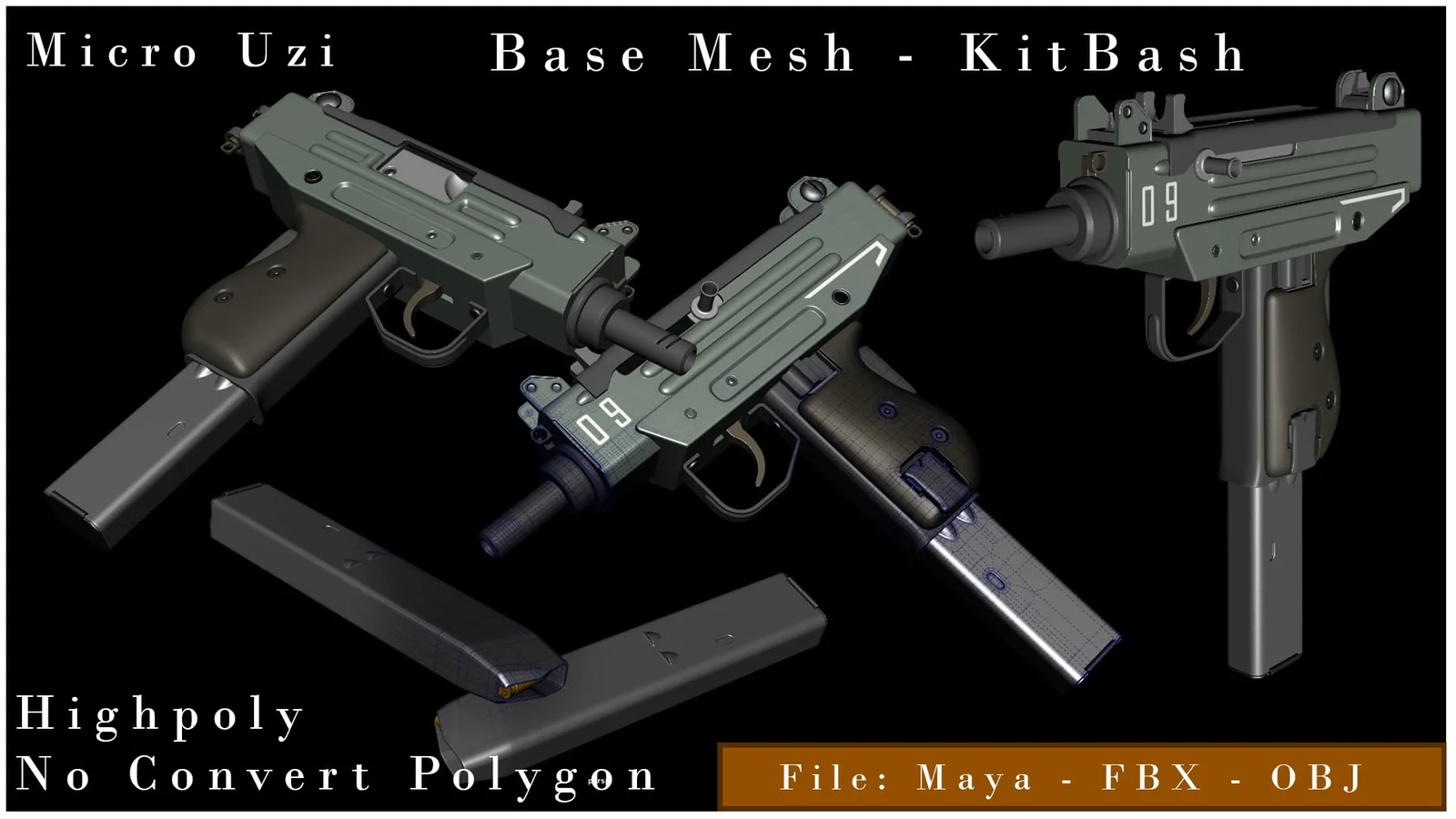 A high-poly 3D model of a Micro Uzi submachine gun. The geometry has not been converted to lower polygon counts and is presented without topology reduction. The model is provided in formats common for 3D workflows and game production pipelines.