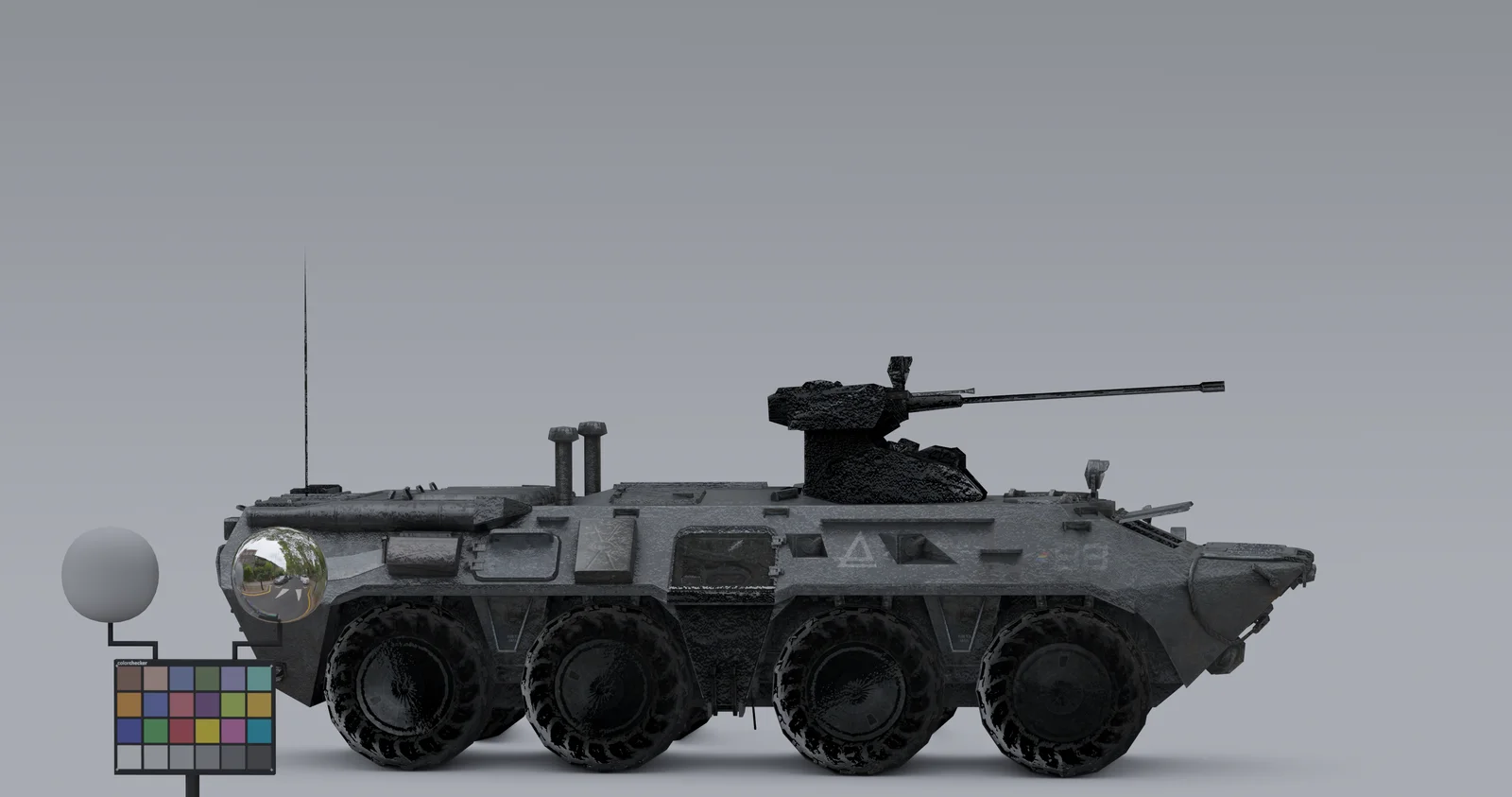 This is a rigged 3D model of a military vehicle, prepared for animation and compositing workflows. The model features clean topology and is fully UV mapped. It includes PBR materials, with all required textures packed directly into the provided .blend file. The asset is set up for rendering in Cycles.