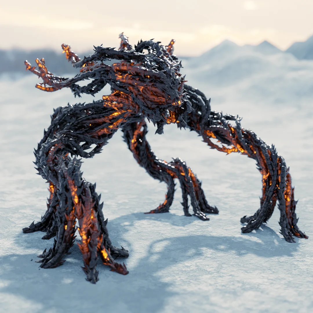 Mimic Effects provides procedural creature anatomy systems driven by Geometry Nodes. The package includes two distinct setups: a tendril system and a spike system.