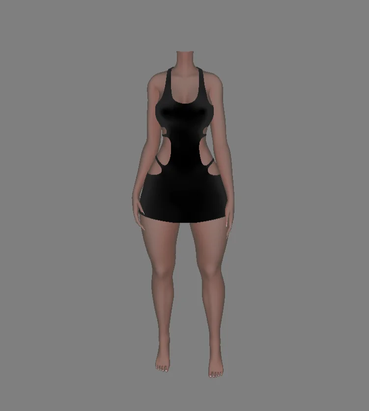 A 3D model of a mini dress provided in FBX format. The geometry is specifically proportioned to fit the Zinpias heeled foot base, making it suitable for character and avatar creation workflows. The underlying base character model is not included.