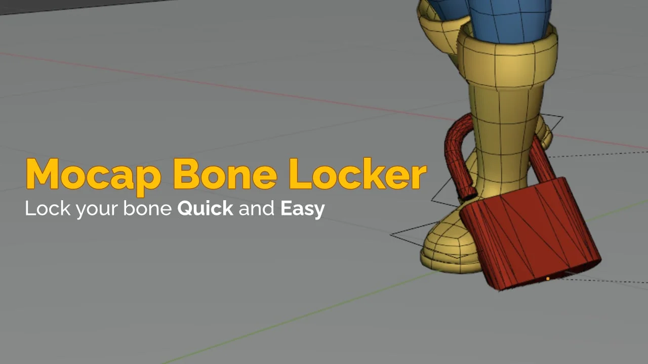 Mocap Bone Lock is an add-on for cleaning up motion capture data by locking bones in place over time. It is designed to fix foot and hand sliding after retargeting, utilizing a non-destructive workflow based on the Non-Linear Animation (NLA) editor. The tool preserves the original motion data, allowing users to safely iterate on their cleanup process.