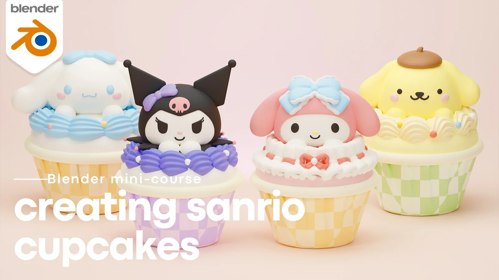 This mini-course provides step-by-step instructions for modeling and texturing four Sanrio character cupcakes in Blender. The curriculum covers utilizing curves for complex shapes and applying common modifiers like subdivision, solidify, mirror, array, and simple deform. Students will also explore texturing within the shading workspace. An optional Halloween edition expands the course with additional lessons on creating themed items, building material nodes, setting up scene lighting, and rendering a stylized background. The course is designed for beginners and includes introductory videos, voice-overs, and English subtitles.