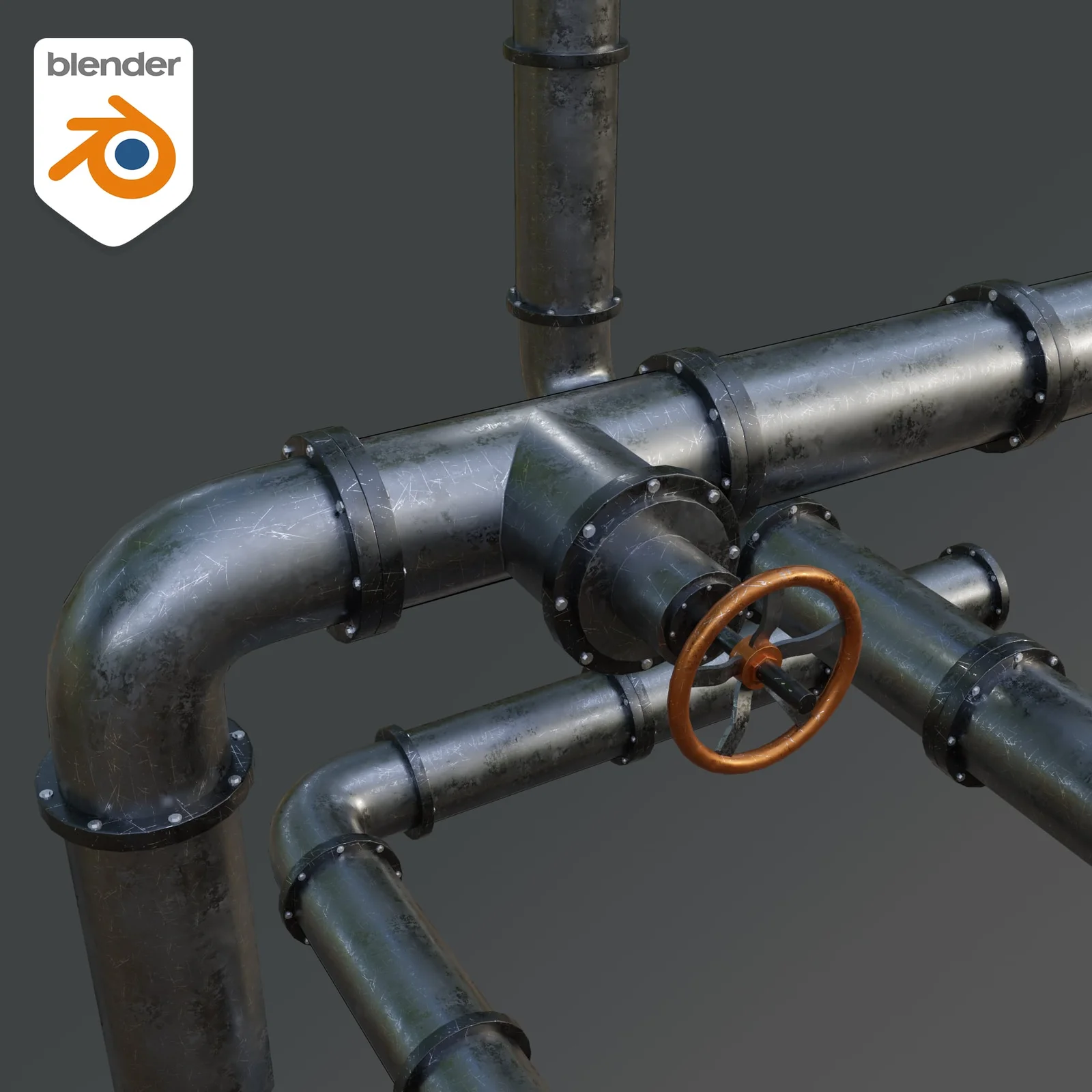 A collection of modular pipe kitbash models designed for constructing industrial pipeline systems and detailing environments. The assets are provided natively for Blender, with all necessary textures packed directly into the .blend file.