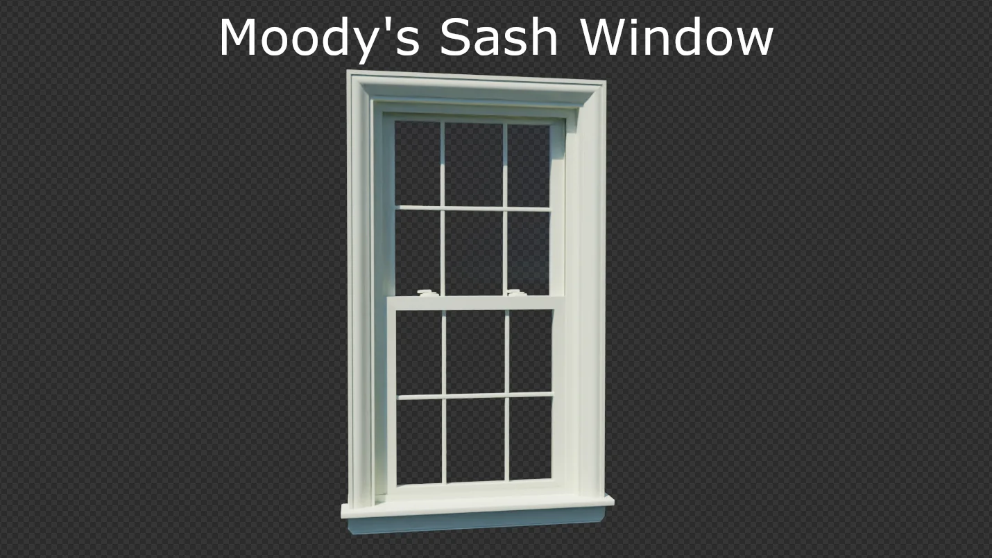 Moody's Sash Window is a procedural asset built with Geometry Nodes. It generates customizable sash windows that can be adjusted to match specific architectural dimensions in your scene. The asset includes a dedicated Geometry Nodes boolean tool designed to simplify cutting out the window placement directly into your wall geometry.