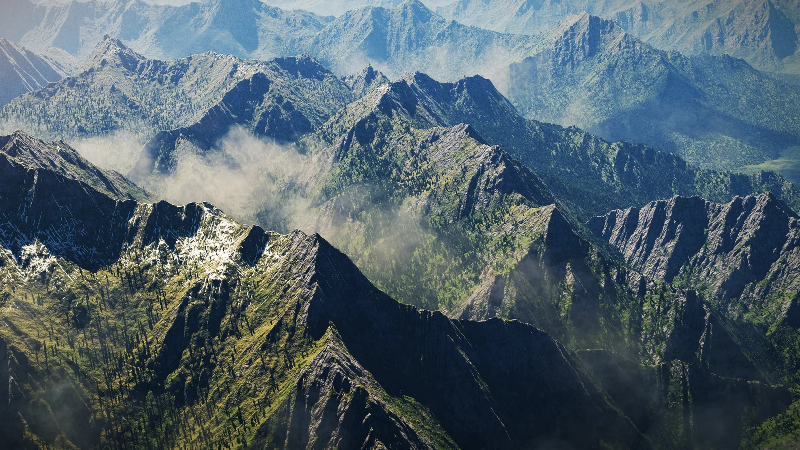 This product provides a procedural mountain generator built using Blender's Geometry Nodes system. It is designed to create customizable 3D backgrounds as a dynamic alternative to 2D image backdrops or plates. Users can adjust parameters directly to alter mountain dimensions, vegetation spread, snow coverage, and rock formations, allowing for varied terrain shapes that react naturally to scene lighting.