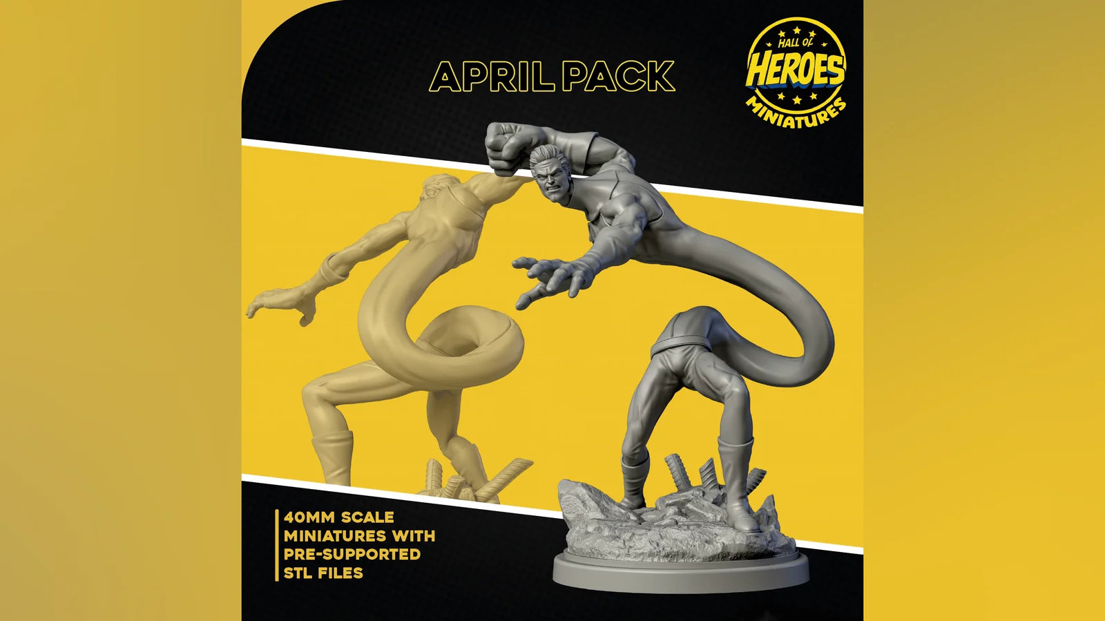 A 40mm scale 3D printable miniature model of Mr. Fantastic intended for tabletop gaming or display. The model includes a 35mm base and is optimized for detailed, stable output. Pre-supported files are provided for resin 3D printing workflows.