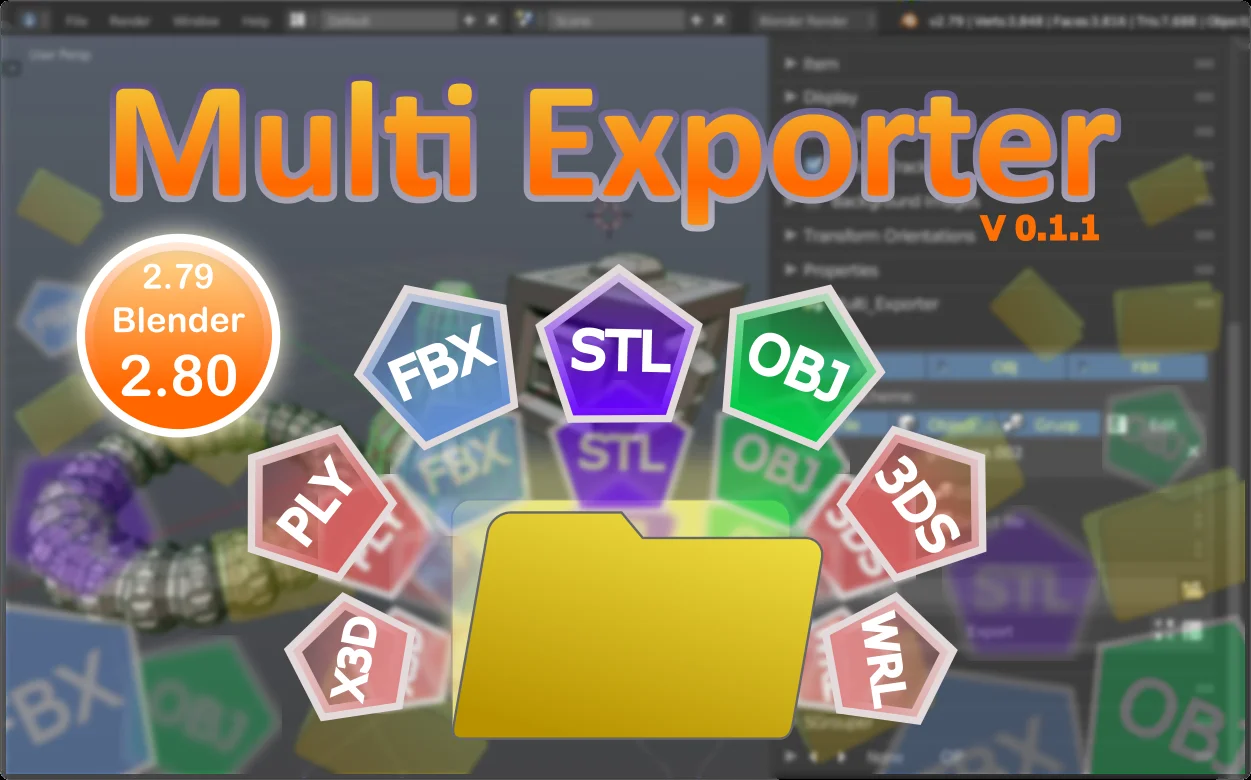 This add-on enables the simultaneous export of mesh objects into multiple file formats, including STL, OBJ, FBX, X3D, Alembic (ABC), Collada (DAE), and glTF. It includes a batch import mode that supports selecting multiple files at once. Users can save custom export settings, automatically clear transforms (location, rotation, and scale) before exporting, and utilize a pop-up menu accessed via a dedicated shortcut. The tool also provides an advanced naming scheme feature, allowing for automated file naming based on the Blender file, active object, or group names.