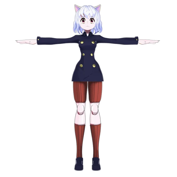A rigged 3D character model of Neferpitou, distributed as a native Blender project file. The purchase includes the character mesh, a complete armature setup for posing and animation, and all required textures packed directly into the file for immediate use.