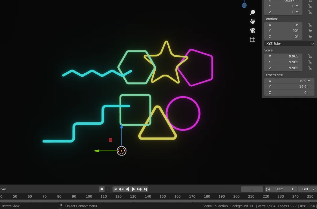 A collection of 3D neon tube light models designed for club environments and similar illuminated scenes. The set includes eight distinct geometric shapes: circle, hexagon, pentagon, square, squiggle, star, steps, and triangle. All models feature quad-based topology and are reasonably optimized for integration into larger scenes. The models do not include built-in materials, allowing you to apply your preferred emissive shaders.
