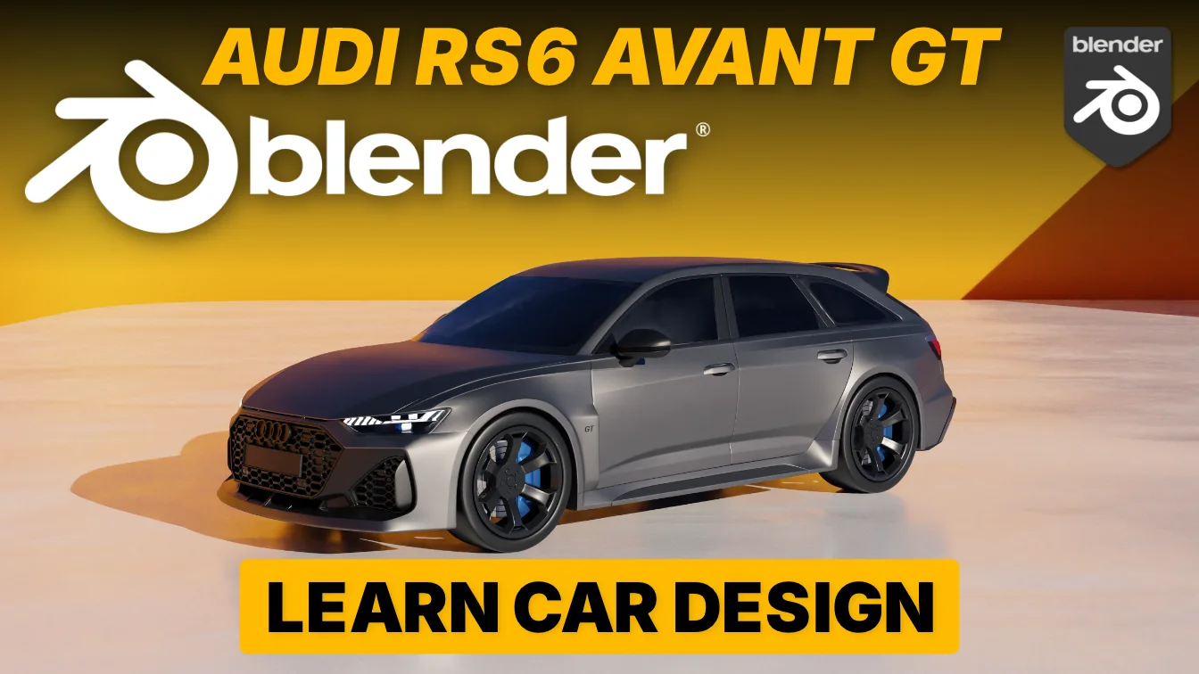 This video course demonstrates the step-by-step process of modeling an Audi RS6 Avant GT in Blender. The tutorial begins with setting up reference blueprints to establish accurate proportions and scale. Viewers will learn how to construct clean topology starting from a single vertex, focusing on hard-surface modeling techniques to create complex surfaces, body panels, grilles, lights, trim, and wheels.