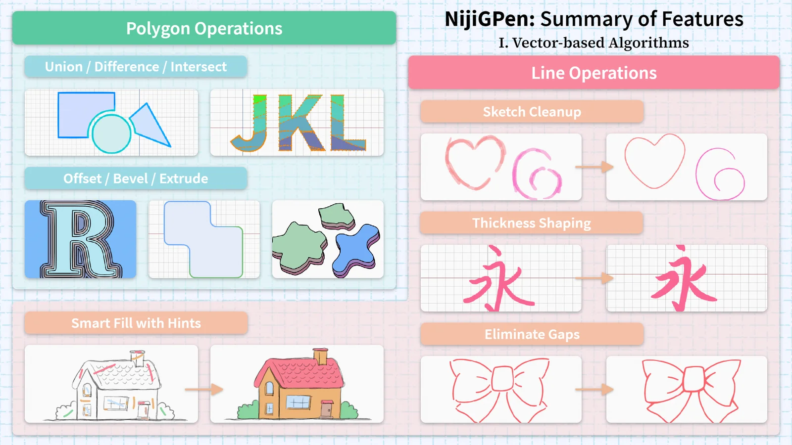 NijiGPen is an add-on that expands Blender's Grease Pencil capabilities for 2D graphic design and illustration workflows. It introduces core 2D vector operations, enabling boolean functions like union, difference, and intersection, as well as shape offset and inset calculations. The tool also provides methods for converting 2D Grease Pencil shapes into 3D meshes, supporting frustum and contour generation alongside planar geometry with auto-generated normal maps.