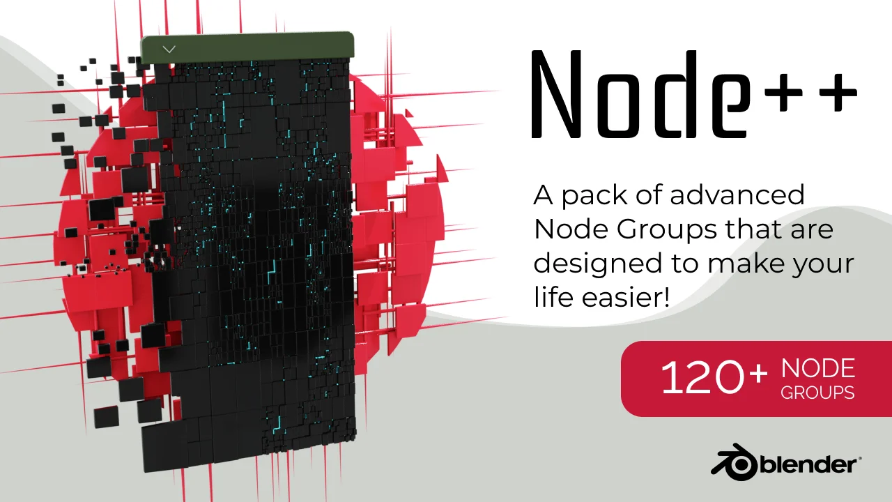 Node++ is a comprehensive collection of over 125 custom geometry node groups designed to streamline procedural workflows. Installed as an add-on, the toolset integrates directly into the user interface, organizing the custom nodes into dedicated sub-menus for quick access during node tree construction.